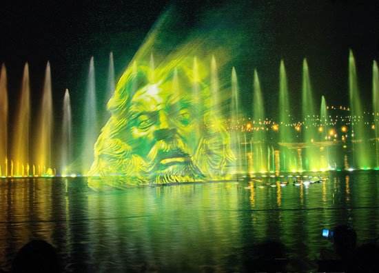 激光水幕電影采用特殊的投影機(jī)播放,使用的影片也是專門為水幕電影特制的影帶。由于電影的屏幕是透明的水膜,因此在電影播放時(shí)會(huì)有一種特殊的光學(xué)效果,屏幕的視覺穿透性可使畫面具有一種立體的感覺,影片的內(nèi)容可與水面巧妙的結(jié)合,更有一種身臨其境般的奇幻感覺。水幕電影是通過高壓水泵和特制水幕發(fā)生器,將水自下而上,高速噴出,霧化后形成扇形“銀幕”,由專用放映機(jī)將特制的錄影帶投射在“銀幕”上,形成水幕電影。當(dāng)觀眾在觀摩電影時(shí),扇形水幕與自然夜空融為一體,當(dāng)人物出入畫面時(shí),好似人物騰起飛向天空或自天而降,產(chǎn)生一種虛無縹緲和夢(mèng)幻的感覺,令人神往。其控制方法有:編程控制、直接控制和實(shí)用程序控制,水幕電影影視效果奇特、新穎的廣告宣傳工具,各種廣場(chǎng)及寬闊的水面均可按裝水幕電影。